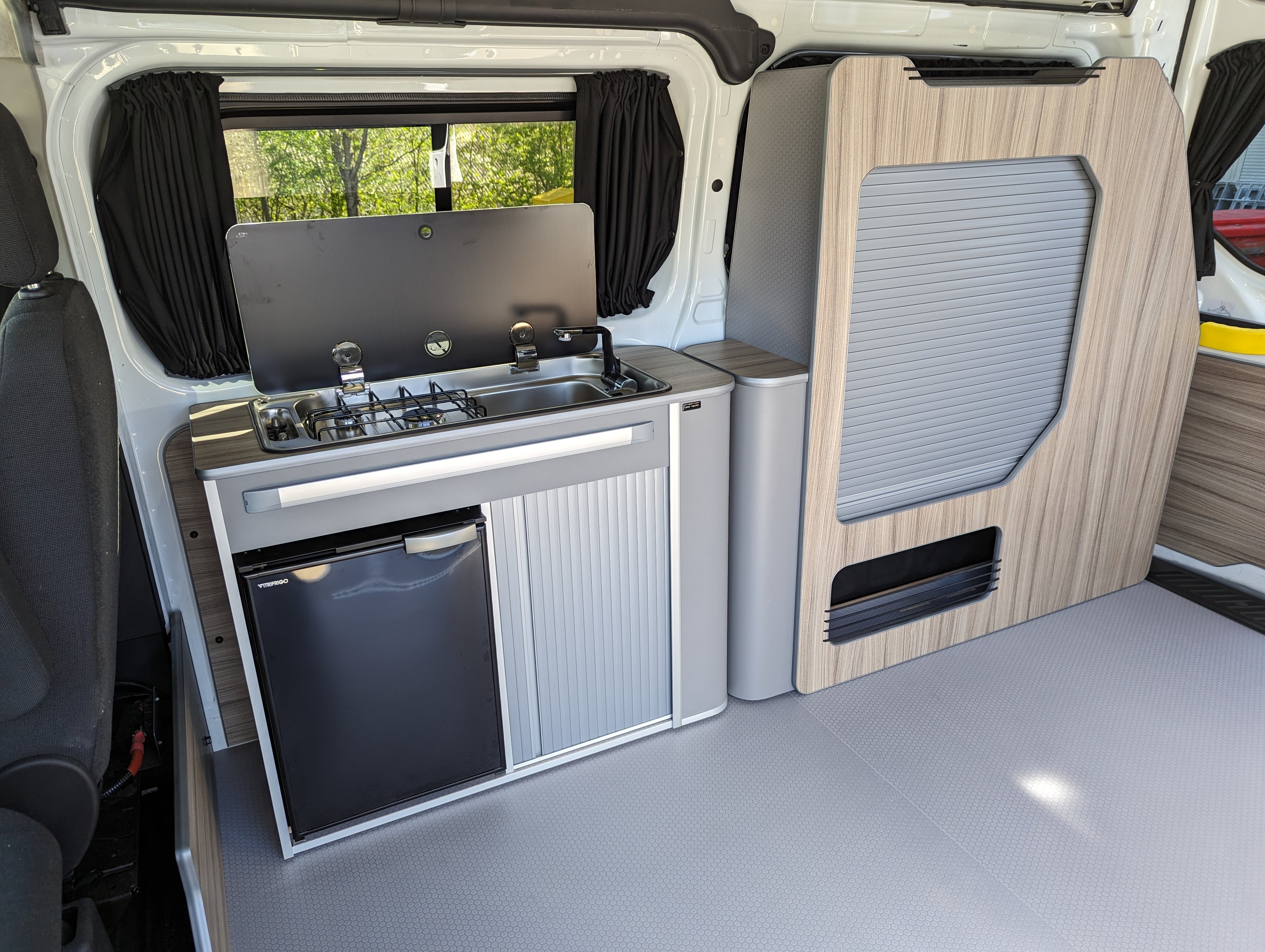 The Ford Transit Custom in all its versions makes a great campervan, we have self fit campervan pod options for the panel van in SWB & LWB and also the Tourneo Custom
